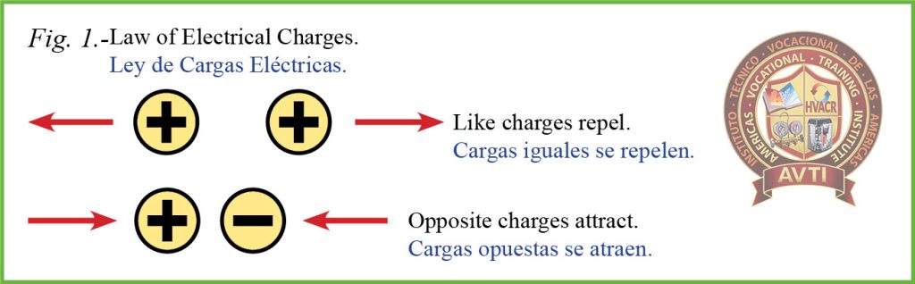 La energía eléctrica es el movimiento de electrones a través de un conductor. Los aparatos eléctricos están diseñados para convertir la energía eléctrica a otra forma de energía, y así realizar un trabajo útil. Algunos dispositivos producen calor, mientras que otros producen movimiento o luz, dándoles la definición como una carga eléctrica, que es todo lo que hace un trabajo útil, como el calor, la luz y el magnetismo. La Ley de las Cargas Eléctricas indica; que cargas iguales se repelen y cargas opuestas se atraen. Un exceso de electrones son atraídos por falta de electrones de los átomos. Para realizar un trabajo útil, debe haber un flujo de electrones producidos constantemente.